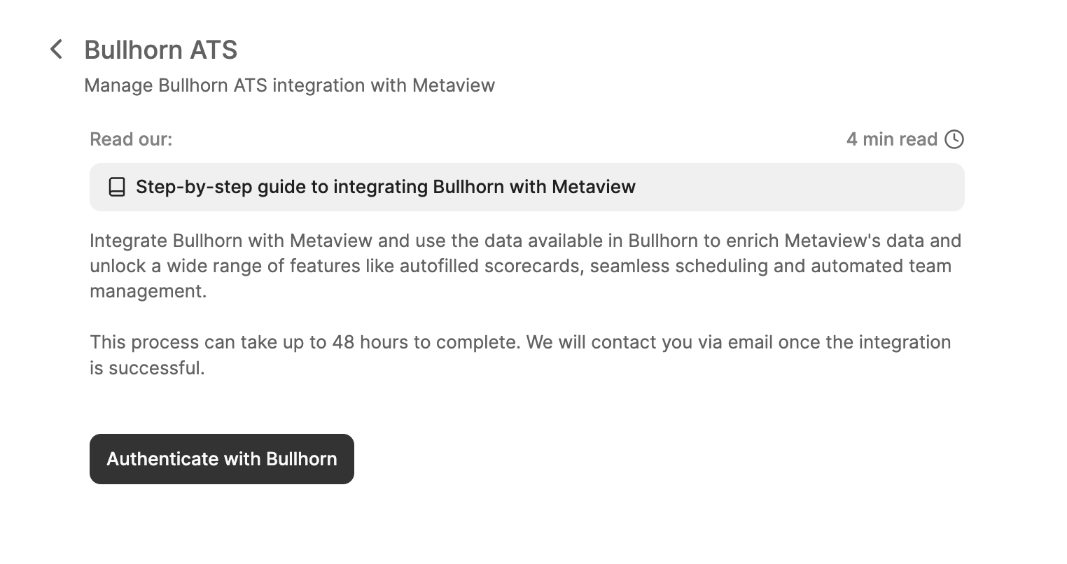 Integrating your Bullhorn ATS to Metaview unlocks the following features:- Automatic scheduling directly from ATS