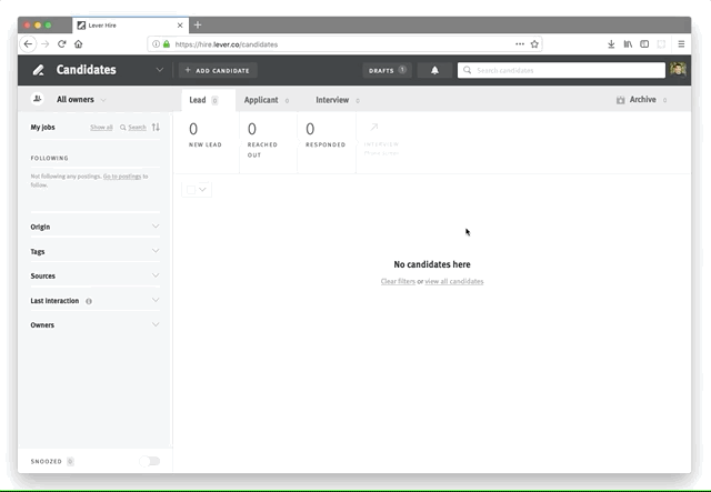 - Add new candidates to your ATS that have been have sourced