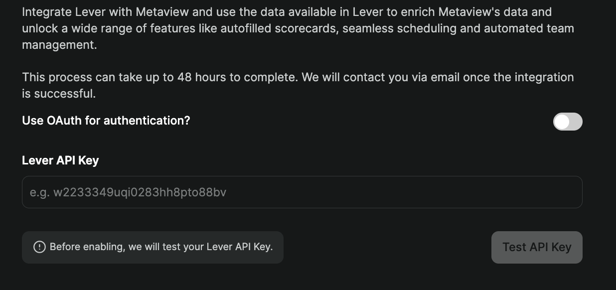 4. Add the Lever API key to Metaview