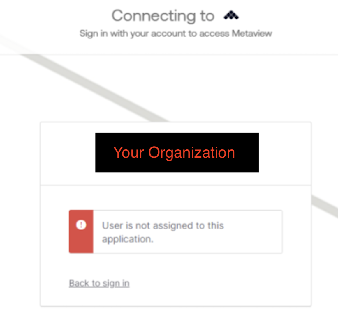 If you encounter the error message “User is not assigned to this application” you will need to contact your IT team and request them to give you access to Metaview.