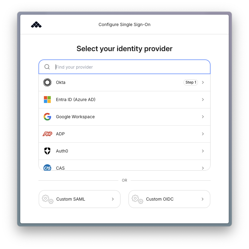 identity providerfrom the list. - Follow the provider-specific setup instructions provided to complete the set up.
