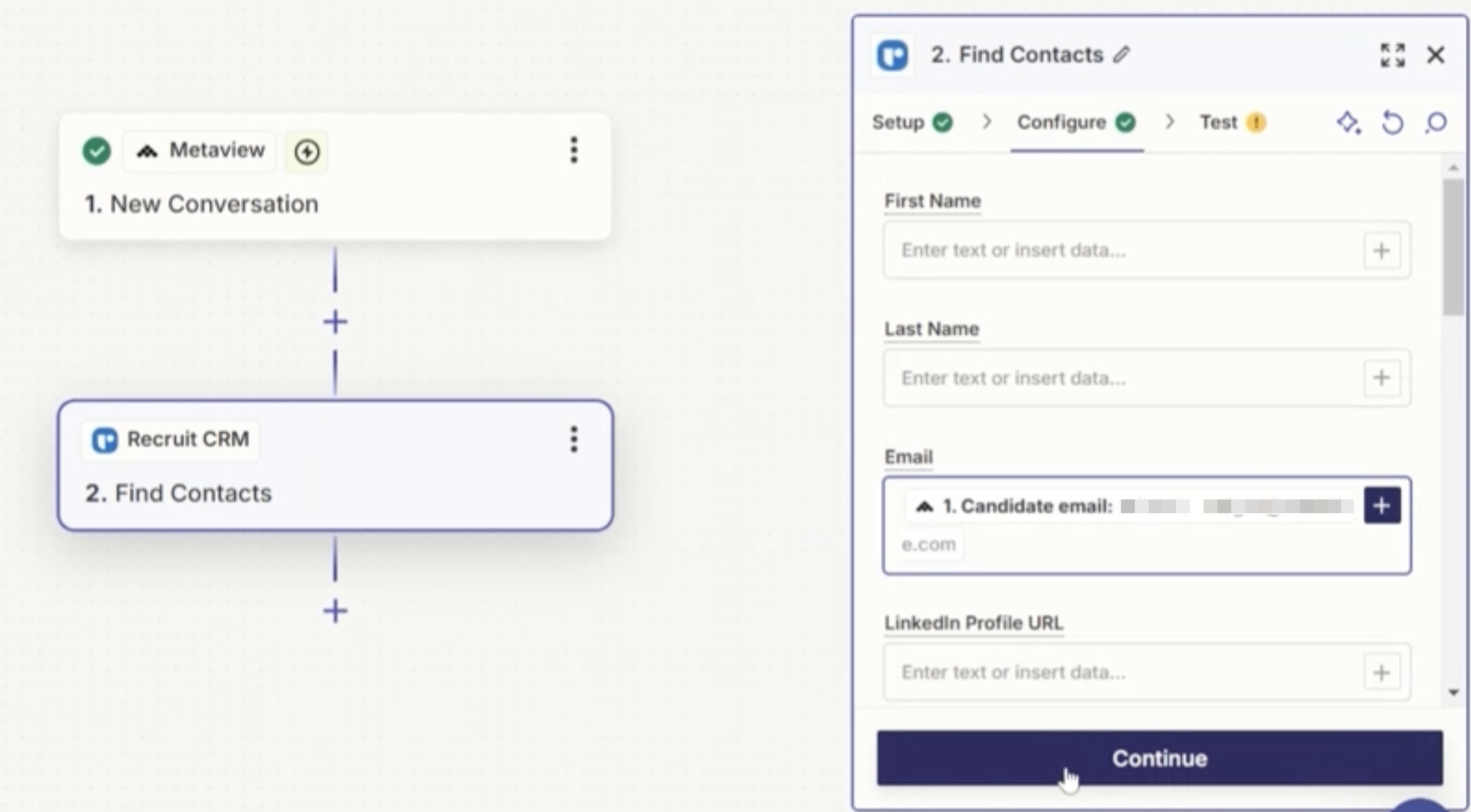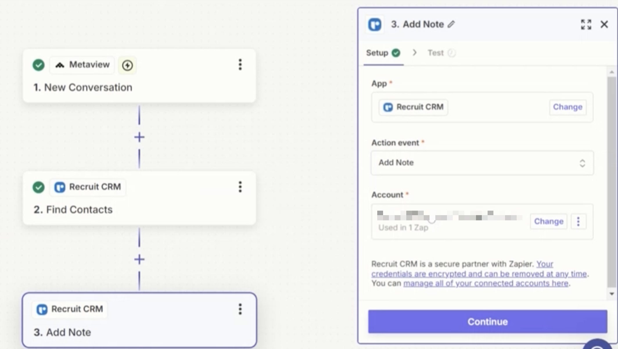 With this setup, every Metaview conversation summary will be automatically added as a note to the candidate’s profile in Recruit CRM, streamlining candidate record-keeping. If you have any issues, please contact support at support@metaview.ai.