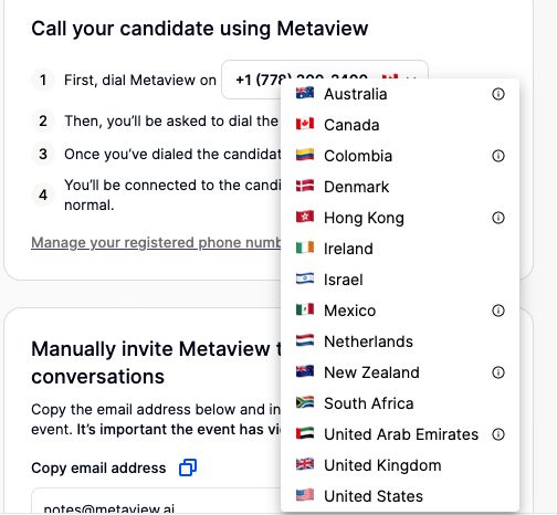 Yes, Metaview’s phone option is compatible with both Manual invites and Automatic scheduling. If you invite Metaview to upcoming calendar event with a phone number, by dialing the switchboard at the scheduled start time, you will benefit from the dial-assist feature so you won’t need to type up the candidate’s number.