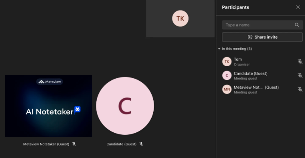 If you are in a Teams call and want to have Metaview join immediately, in the participants tab, selectShare invite and Copy meeting link.